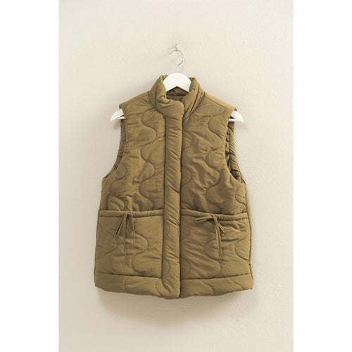 Wave Quilted Ribbon Tie Detailed Puffer Vest